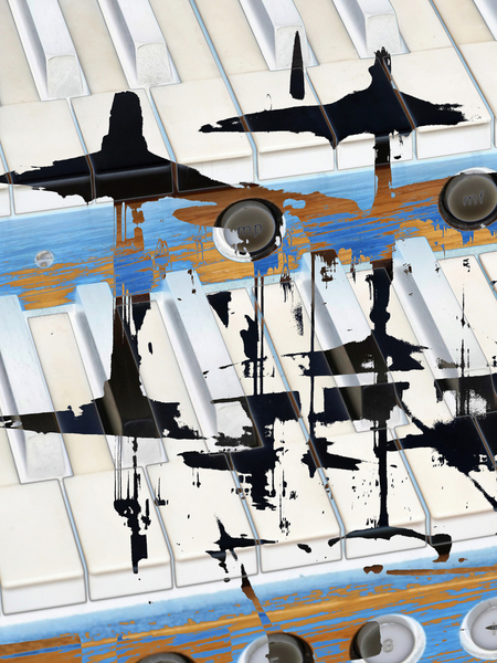 Und dies sind die zwei Exponate, mit denen ich mich auch beworben hatte. Aber es wurde grundsätzlich nur ein Bild ausgewählt. Das rechte Bild wurde mit KI generiert und am PC weiterverarbeitet.