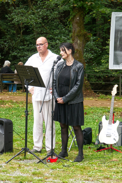 Die Vernissage am 8. September war sehr schön, hier einige Impressionen - Signieren der Kalender, Begrüßung durch die Organisatoren Manuele Klein und Detlev Weigand, die ausstellenden Künstler (leider nicht vollständig erschienen) und vor meinem Exponat.